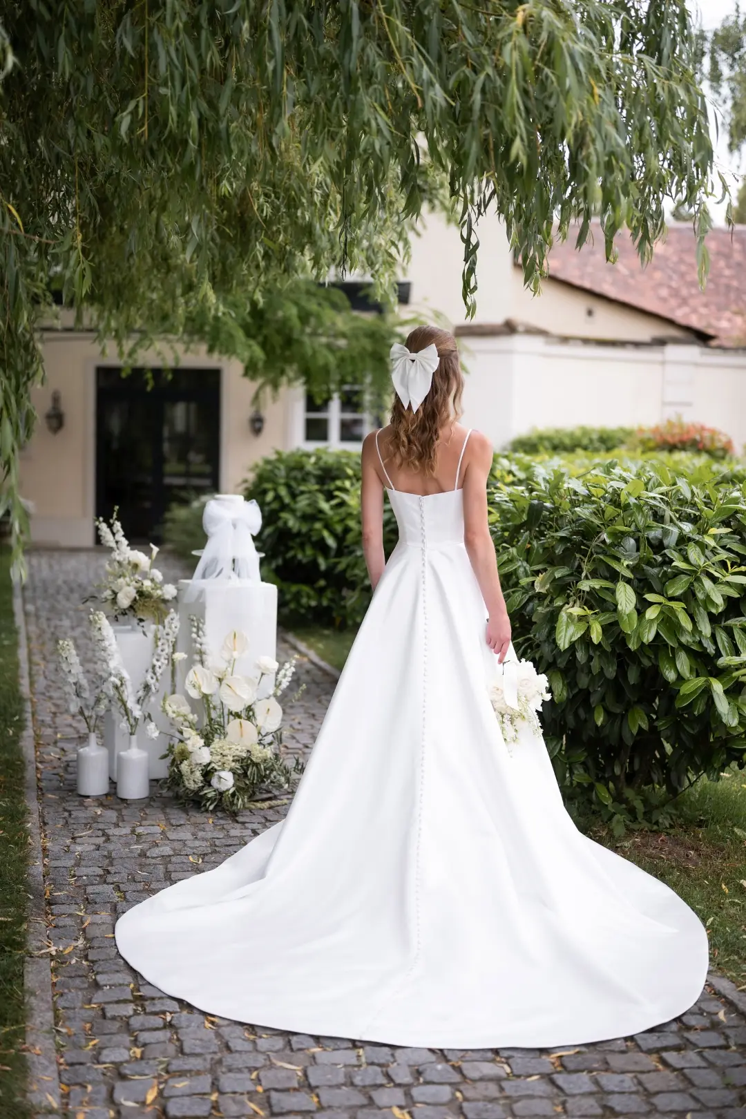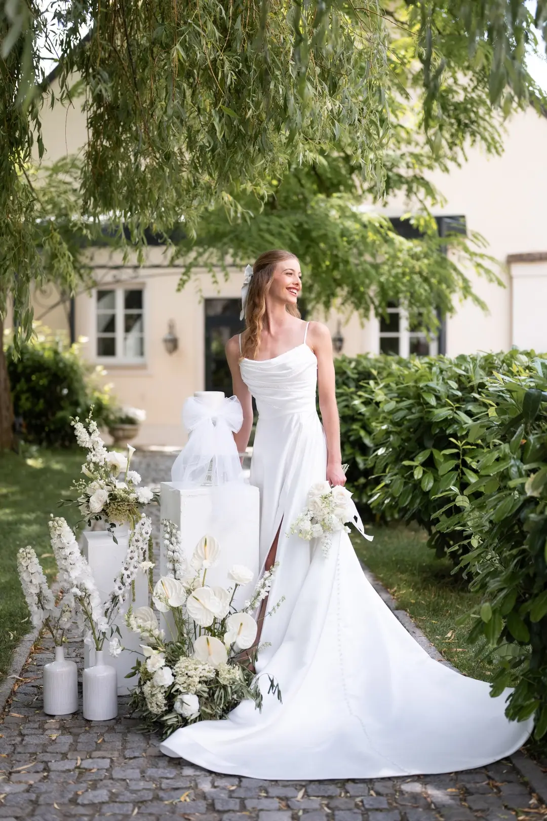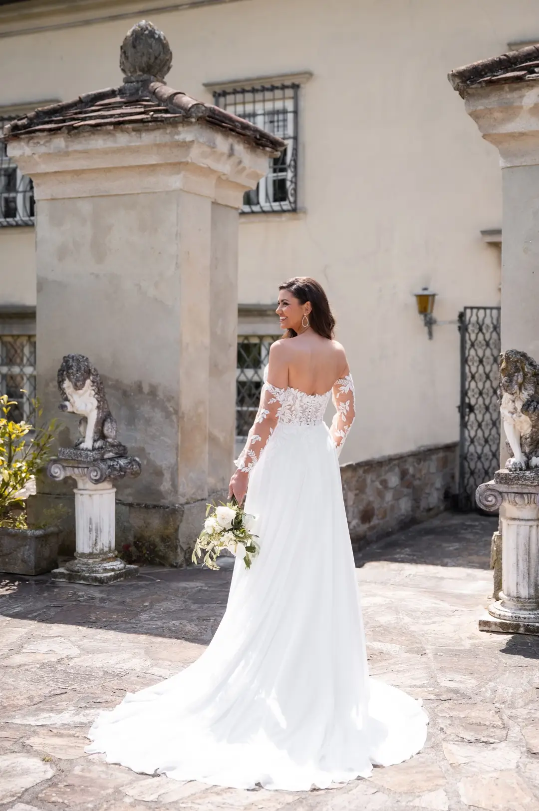 Sposa Toscana ist eine Exklusivmarke, die Sie in Österreich nur bei Steinecker erhalten. Das garantiert Ihnen eine großzügige Exklusivität im Vergleich zu anderen Marken. Hochwertige Materialien, raffinierte Details und ein außergewöhnliches Preis-Leistungsverhältnis sind weitere Merkmale von Sposa Toscana.