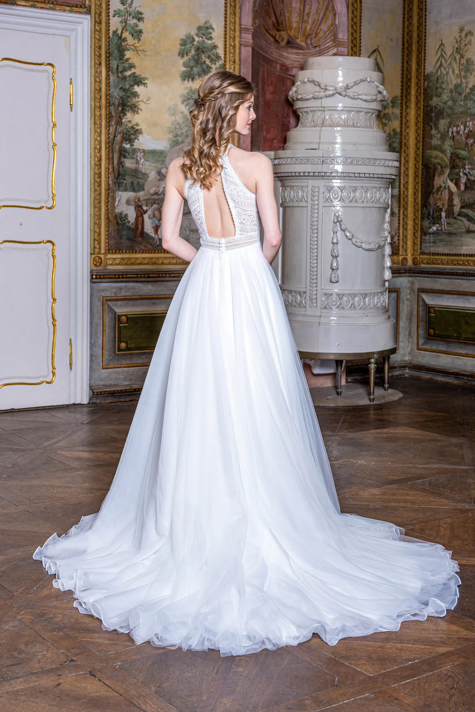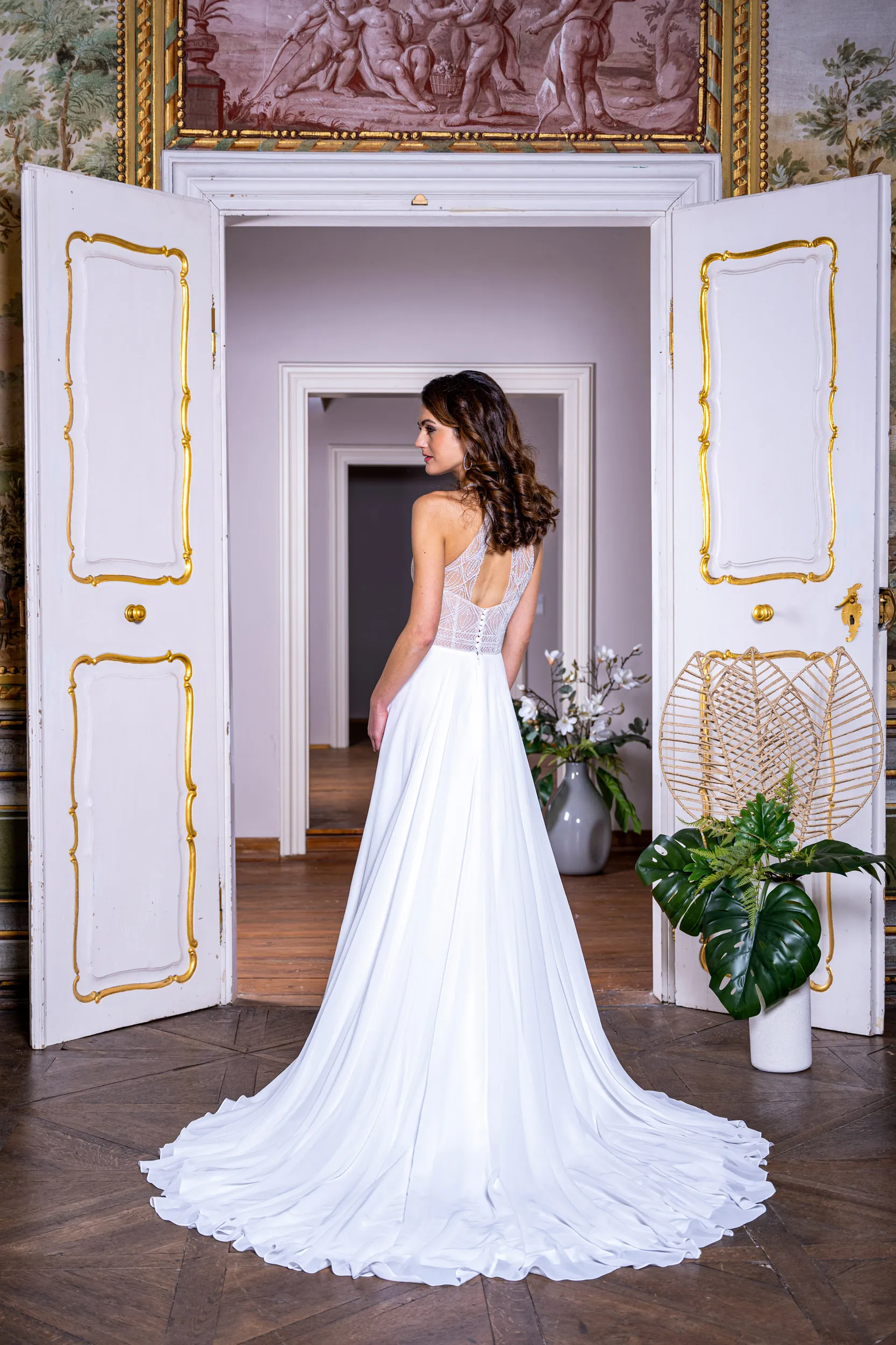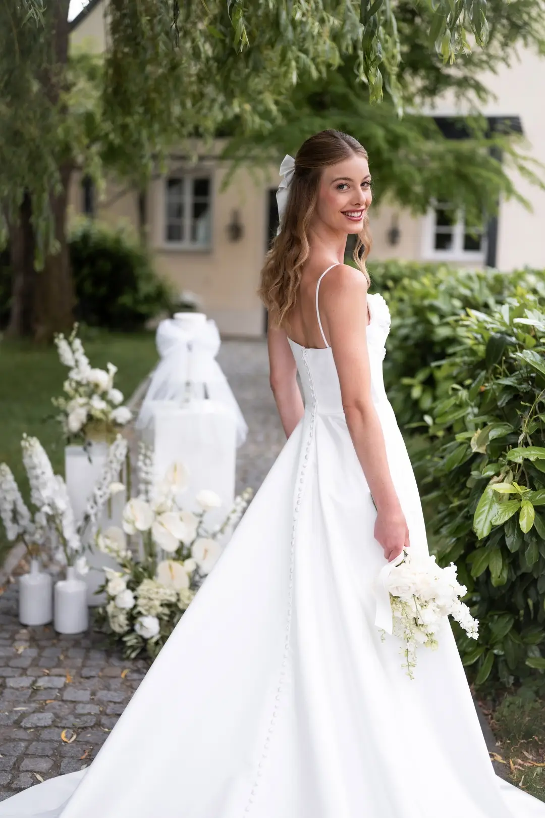 Sposa Toscana ist eine Exklusivmarke, die Sie in Österreich nur bei Steinecker erhalten. Das garantiert Ihnen eine großzügige Exklusivität im Vergleich zu anderen Marken. Hochwertige Materialien, raffinierte Details und ein außergewöhnliches Preis-Leistungsverhältnis sind weitere Merkmale von Sposa Toscana.